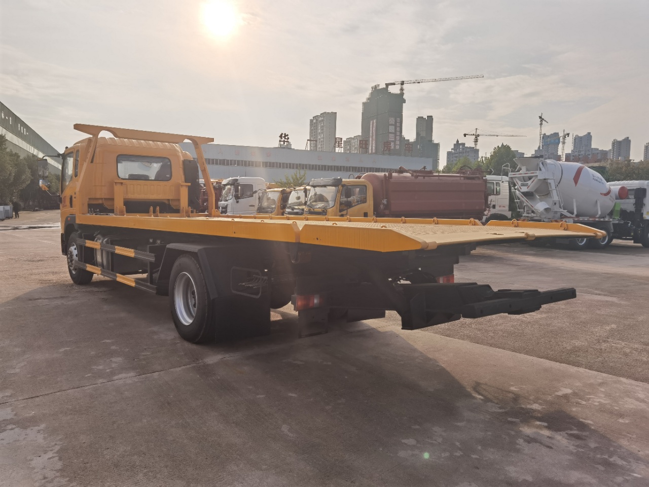 一拖二上装配置:双侧联动操作装置,8吨平板,8吨3节后拖臂,8吨绞盘(35米钢丝绳)带液压翻板1.2米。总板长7.9米。4根绑带,L型抱胎架一对,抱胎筒一对,小车1对,1套拖叉座,3套拖叉。