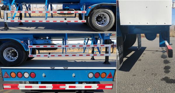 | ABS型号:4005000880;ABS生产企业:威伯科汽车**系统(**)有限公司;选装EBS系统,生产厂家为:广州瑞立科密汽车电子股份有限公司,EBS型号为:CM-TEBS,选装EBS系统生产厂家:威伯科汽车**系统(**)有限公司, 型号:4801020300,侧后防护情况:侧防护材质为高强度铝合金,螺栓连接;后下部防护装置尺寸:120mm×60mm,后防护材质:Q23**,与车架纵梁焊接,离地高度450mm;罐体有效容积(立方米)、罐体外形尺寸(mm):罐体为双层结构,罐体有效容积:52.59立方米,罐体总容量:52.6立方米,介质:液态乙烷,外筒体外形尺寸:φ2500×12785,内筒体外形尺寸:φ2362×12543,;危险货物类项号:2.1,危险货物运输车辆类型:FL型;单位容积充装质量:467.7千克/立方米.采用适用于牵引危险品半挂车的牵引车; | |||