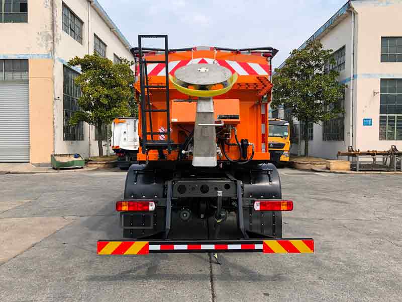 | 该车用于道路除冰雪作业,安装有固体融雪剂撒布装置.选装1:不带前部连接支架及工作灯,车长8180mm,接近角/离去角19/11°,前悬/后悬1430/2250mm,质量在误差以内忽略不计;选装2:仅在除雪作业时,前部连接支架安装除雪滚刷,前伸量2270mm, 接近角/离去角16/11°,前悬/后悬1660/2250mm,车长10680mm;仅选用4500mm轴距;仅选用钢板弹簧悬架;侧/后防护材质:铝合金/Q23**,连接方式都为螺栓连接;后防护断面尺寸80×140mm,离地高度400mm; ABS型号/生产厂家:4460046300(EBS3)/威伯科(上海)管理有限公司;安装带卫星定位功能的行驶记录仪. | |||