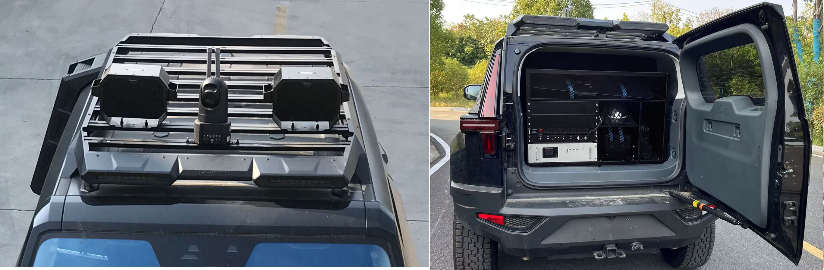 该车主要专用装置:防暴盾牌,防暴驱散器,移动取证系统;适用于各种大型集会警戒,以及骚乱,暴动等场所;该产品是新能源车辆,类型为插电式增程混合动力,该车允许外接充电,储能装置种类:磷酸铁锂锂离子电池,储能装置单体的生产企业:江苏时代新能源科技有限公司,储能装置总成的生产企业:宁德时代新能源科技股份有限公司.发动机最大净功率为140kW,ABS/EBS型号及生产厂:IBC/采埃孚汽车科技(上海)有限公司,该车配备汽车事件数据记录系统(EDR),安装直接供电ETC车载装置。 | |||