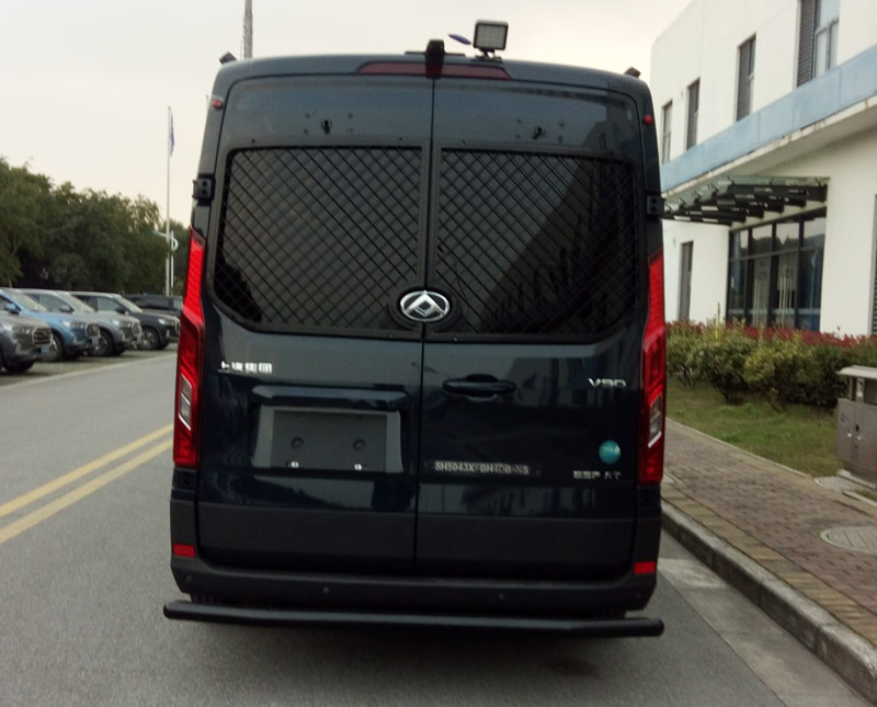 该车装配有防暴网等防暴装置,用于执行安全巡逻任务或平息群体突发事件.该车可选装广场照明灯(高度为2625mm),可选装车顶云台(高度2905mm),可选装后防撞杠(长度为5990mm,后悬1210mm,离去角15°),可选装监控摄像头、车内隔断等。该车不作为公路、旅游客车使用,安装带卫星定位功能的行驶记录仪,该车可随原车选装前格栅、LED前组合灯、LED后尾灯、轮圈、轮饰盖、前图形商标、后尾标、同平面推拉窗、后摄像头、车身同色和材料本色的牌照装饰板和门把手、电动移门、电动侧踏步、360摄像头、空气悬架.可选装ETC车载装置.该车可不装日间行车灯.ABS型号:ABS 9,ESP9,ABS生产企业:博世汽车部件(苏州)有限公司,博世汽车部件(苏州)有限公司.发动机最大净功率:108.5kW.该车装配手动变速器时最高车速为145km/h;装配自动变速器时最高车速为150km/h. | |||