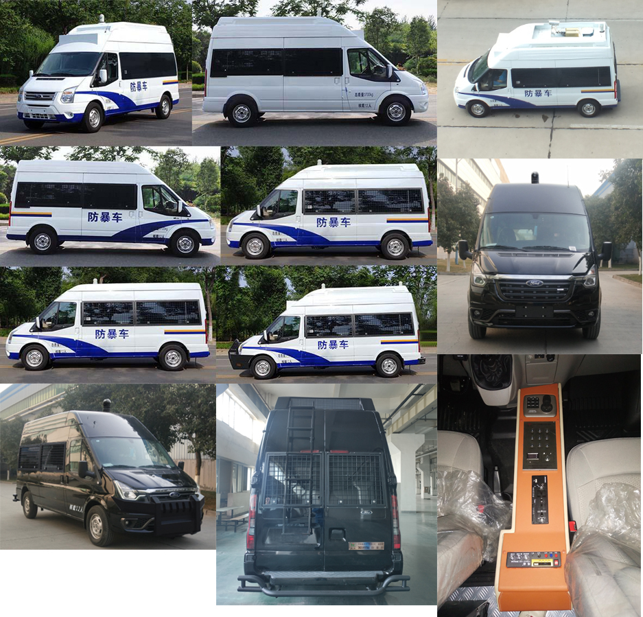 该车配备防暴网,集中控制柜,集中控制系统,4G硬盘录像机,云台摄像头等专用装置,主要用于预防和处置各种群体性事件,打击恐怖活动,具有一定的自身防护能力的专用车辆.可选装不带车顶平台,不带车顶平台时整车高度为2890mm;选装中顶带平台,中顶带平台时整车高度为2780mm,VIN号为LJXBMDJD;选装中顶不带平台,选装中顶不带平台时整车高度为2660mm,VIN号为LJXBMDJD.选装不带防爆网.10-11座时整备质量为2580kg,12-13座时整备质量为2700kg,选装车顶折杆灯和音柱时,整备质量2835kg.选装前后装饰杠时,前悬/后悬(mm):1190/1207,接近角/离去角(°):20/22,整车长度为6147mm.选装新造型前后装饰杠时,前悬/后悬(mm):1090/1180,整车长度为6020mm.选装后部云台摄像头,随底盘选装机械踏板或电动踏板,选装普通款前大灯,选装号牌板支架,车门两侧选装不带英文装饰条,尾部选装外部标识,选装车身同色后视镜,选装车身同色门把手及钥匙孔.随底盘选装新前脸时,前悬/后悬(mm):973/1097,整车长度为5820mm.ABS型号/生产厂:6C11 2M110 A*或CC11 2C405 A*/博世汽车部件(苏州)有限公司.发动机最大净功率101kW.选装后部爬梯. | |||