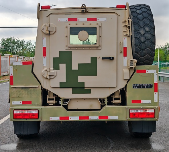 采用直接供电方式的ETC车载装置。安装具有卫星定位功能的行驶记录仪,车身总成采用全焊接结构,由防弹钢板和骨架焊接成型.侧面及后下部防护装置为整体式车身构件,材料为Q235,后部防护离地高度为480mm.发动机/净功率:D6.7NS6B290/208.ABS系统型号:ABS-E,生产企业:采埃孚商用车系统(青岛)有限公司.该车装备有防暴装置,用于执行安全巡逻、应急抢修、救援任务或平息群体突发事件。