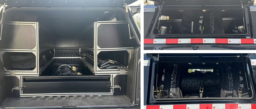 1.ABS型号及生产企业:ESP9/博世汽车部件(苏州)有限公司;2.发动机净功率为120kw;3.选装ETC,选装不同材质、结构的车厢后盖,选装后保险杠样式;4.车辆装配头盔、警棍、盾牌、单警装备等专用装置,用于处置突发性事件;5.悬架型式:前:双横臂式螺旋弹簧独立悬架;后;钢板弹簧非独立悬架. | |||