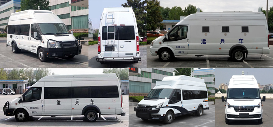 该车配备云台摄像头、集中控制柜、监控显示器等专用装置,主要用于运输警力.该车可选装不带平台、低平台、高平台,随底盘选装中顶.选装不带平台时整车高2595mm,整备质量3050kg;选装低平台时整车高2970mm,整备质量3160kg;选装异形平台时整车高3020mm,整备质量3160kg;选装高平台时整车高3150mm,整备质量3265kg;选装中顶不带平台时整车高2360mm,整备质量3050kg;选装中顶低平台时整车高2735mm,整备质量3160kg;选装中顶异形平台时整车高2780mm,整备质量3160kg;选装中顶高平台时整车高2910mm,整备质量3265kg.选装防暴网,前后保险杠,后爬梯.选装盲窗结构.随底盘选装前脸造型,整车长6543mm,前悬973mm.选装不同样式前装饰杠,整车长6760mm,前悬1080mm.ABS型号/生产厂:6C112M110A*或CC112C405A*/博世汽车部件(苏州)有限公司.发动机DURATORQ4D226H对应的油耗值为9.1(L/100km),最大净功率为101kw. | |||