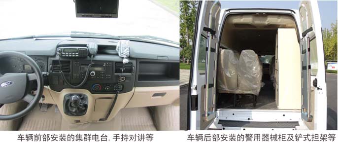 主要专用装置:警用器械柜,担架,集群电台,对讲机等;随底盘选装机械踏板或电动踏板,前大灯,后尾灯,前脸造型(5820mm),顶高(车高2360mm,VIN号LJXBMDJD;车高2590mm,VIN号LJXBHDJD),选装:号牌板支架,车门两侧不带英文装饰条,尾部外部标识,车身同色后视镜,同色门把手及钥匙孔,侧推拉窗;ABS系统控制器型号:6C11 2M110 A*或CC11 2C 405 A*或EV7021,生产厂家:博世汽车部件(苏州)有限公司;发动机最大净功率101kw;车长5780mm时,油耗8.6L/100km; 车长5820mm时,手动档油耗8.1L/100km;自动档油耗8.2L/100km;可选装ETC. | |||